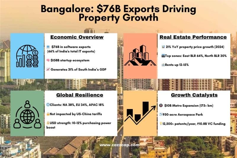Bangalore’s economic structure creates specific real estate opportunities that benefit from export-driven growth while maintaining independence from US market volatility.
